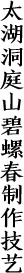 中國名茶洞庭碧螺春產于蘇州太湖的洞庭東西山,最早文獻記載,見于唐代陸羽的《茶經》(八卷)。唐至德二年(757年)三月,陸羽與詩人劉長卿在太湖西山考察茶事,經水月寺采茶品茶。陸羽好友詩僧晈然慕名來訪,寫下了《訪陸處士羽》詩。自此,水月塢的水月茶(小青茶)俗稱“嚇煞人香”漸聞名于世。小青茶在唐宋兩代均列為貢茶。