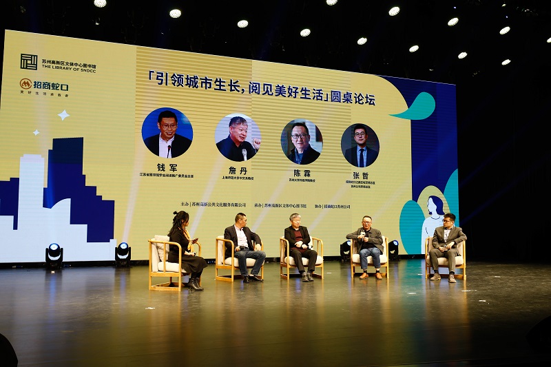 活動最后舉行了以“引領城市發展,閱見美好世界”為主題的圓桌論壇,由江蘇省圖書館學會閱讀推廣委員會主任錢軍、上海師范大學中文系教授詹丹、蘇州大學傳媒學院教授陳霖和招商蛇口蘇州公司營銷副總監張哲一起,從家庭閱讀、數字閱讀以及青少年閱讀等方面,共同探討閱讀的重要性、閱讀與寫作的方法技巧等話題,助力全民閱讀節活動開幕,讓閱讀引領城市生長、走進千家萬戶。