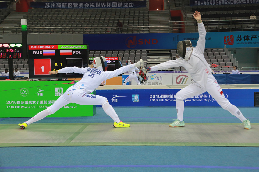 2016年國際劍聯女子重劍世界杯賽(蘇州站),是國際劍聯高水平賽歷賽事,已連續11年在中國成功舉辦,也是江蘇連續十年承辦的傳統品牌賽事。本站比賽是里約奧運會之后在中國舉辦的首站擊劍國際賽事,也是蘇州首次承辦該項賽事。共有來自法國、美國、意大利、韓國等23個國家和地區的120余名運動員參加比賽。其中中國隊作為東道主派出30名運動員滿額參賽,里約奧運會女子重劍個人銅牌獲得者孫一文也登臺“亮劍”。