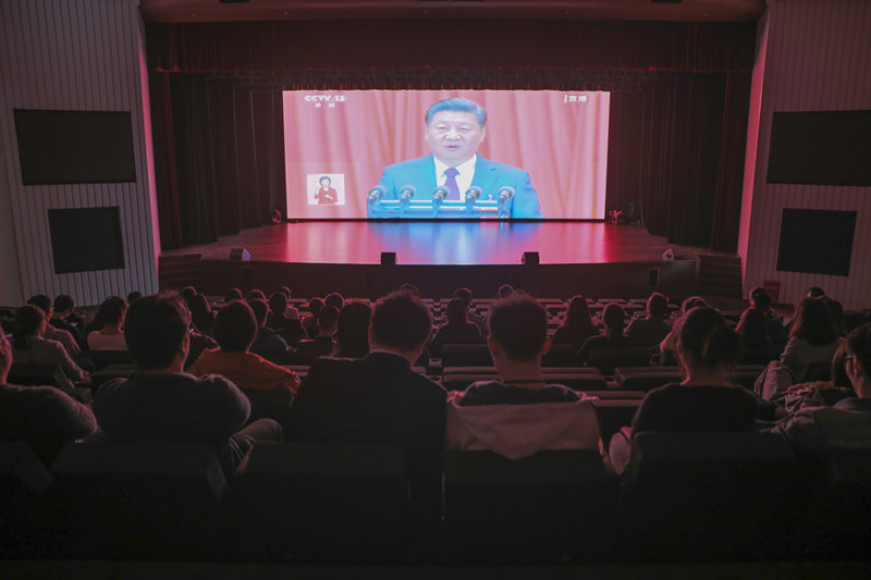10月18日上午九點,中國共產黨第十九次全國代表大會開幕會在人民大會堂大禮堂舉行,習近平總書記代表第十八屆中央委員會向大會作報告。蘇州高新文體集團全體員工在文化館小劇場收看此次開幕會,并認真聆聽習近平總書記的工作報告。