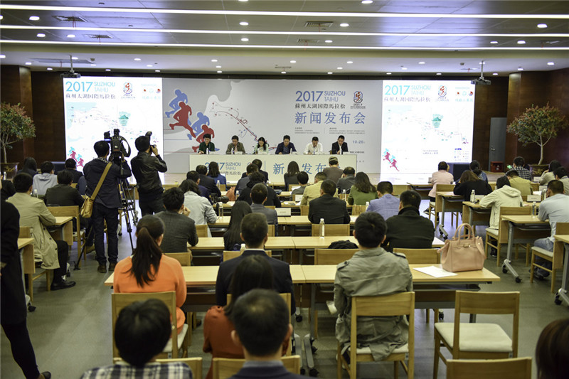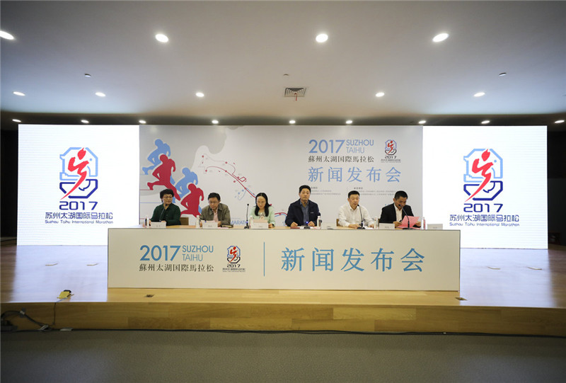 2017年蘇州太湖國際馬拉松新聞發布會于10月26日14時在蘇州高新區文體中心報告廳隆重召開。蘇州高新區工委委員、宣傳部部長朱奚紅,蘇州市體育局副局長龔冀銘,高新區工委宣傳部副部長周皖斌,高新區體育局局長陶文勝,江蘇省體育產業集團有限公司黨委委員周潔,蘇州高新文體集團有限公司董事長、總裁蘇久華等領導出席了本次新聞發布會。此外,來自全國的跑團代表、媒體代表及賽事合作伙伴一百余人參加了此次新聞發布會。