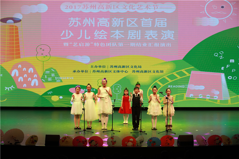 1月13日下午,蘇州高新區首屆少兒繪本劇表演暨“藝啟游”特色團隊第一期結業匯報演出,在蘇州高新區文體中心文化館小劇場隆重舉行,94名學員代表現場展示自己的學習成果,本次活動還邀請了蘇州科技城實驗小學校、蘇州高新區東渚實驗小學校、蘇州科技城外國語學校、蘇州科技城實驗幼兒園、蘇州科技城彭山實驗幼兒園參演繪本劇。