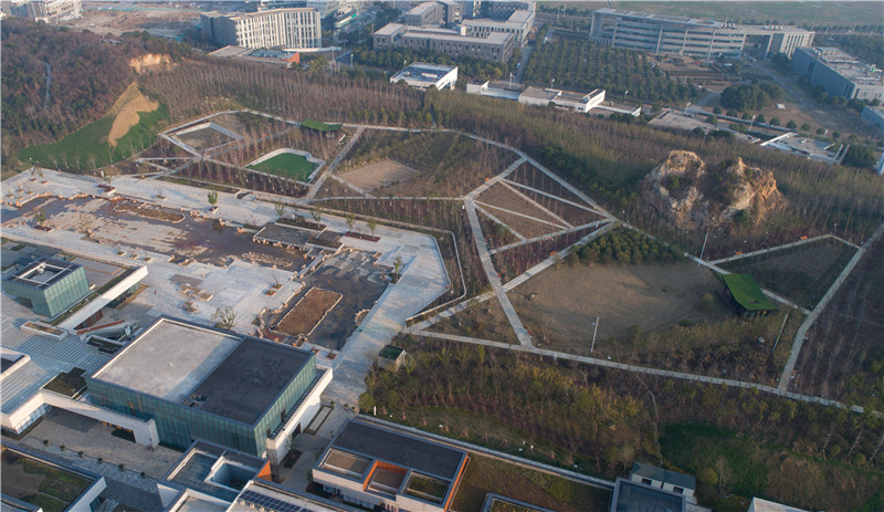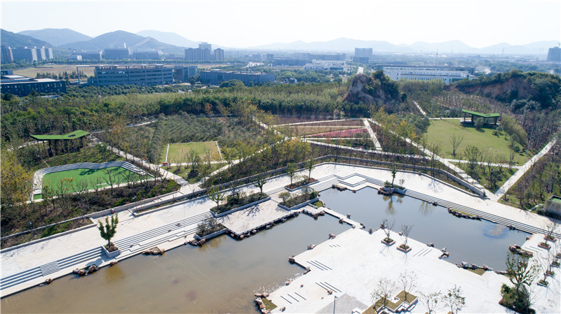 該健身步道屬于龍山體育公園的一部分,南鄰龍之夢商業綜合體,西接蘇州民樂團演藝廳,北靠蘇州高新區文體中心建筑體。步道依山而建,蜿蜒向上,總長達到三公里,是城市中心難得一見的山林步道。