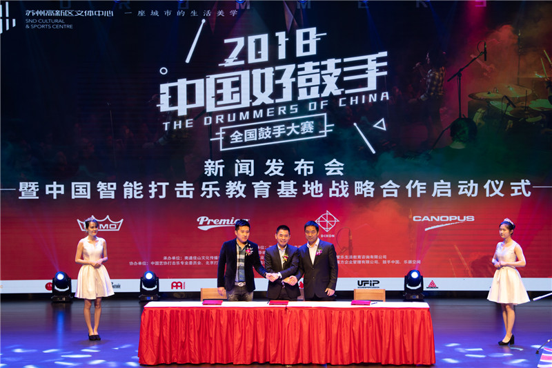 發布會上,2017首屆“中國好鼓手”總決賽成人組冠軍Desire Richard Jordan Bertrand及首屆幼兒組冠軍劉悅嘉相繼帶來國際水準演奏。同時,蘇州高新文體集團正式宣布與“中國好鼓手”這一行業IP簽署五年戰略合作協議,并將以此行業賽事為切入點,攜手各方拓展更加國際化的打擊樂教育事業。蘇州高新文體集團還將與“中國好鼓手”贊助商麥德魔方開啟中國首個智能打擊樂教育基地的建設,為中國打擊樂文化注入一劑強心針!