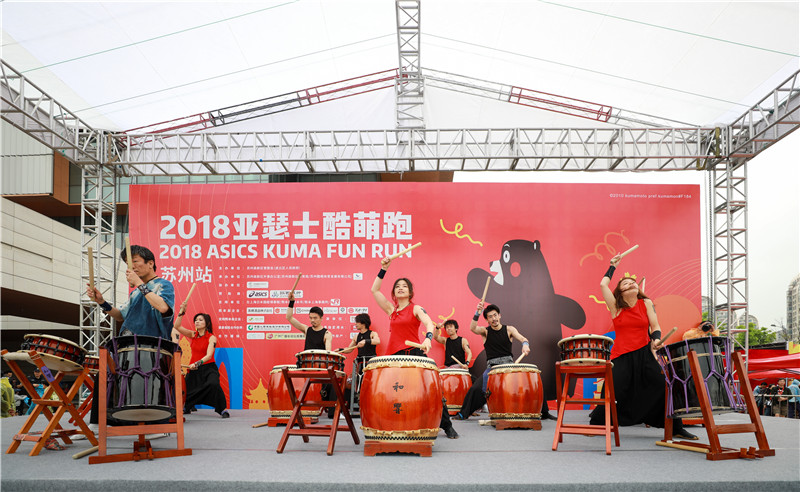 本次賽事更是屬于蘇州高新區和日本熊本市5周年友好城市系列活動之一。熊本部長本尊第二次來到蘇州,吸引到超過4000名跑者來到酷萌跑活動現場。除了總長5公里公開組以及2公里家庭組的比賽之外,還增加了個人交友組,為單身青年提供了交友平臺。雙方攜手完成5公里的挑戰,并獲得額外精美禮品,為賽事增加了更多公益性。亞瑟士小勇士訓練營、KUMAMON體操、來自熊本的草莓俱樂部、劍道表演、太鼓秀、熊本縣特產展等眾多活動,也為所有到場的跑者奉上一場運動盛宴。參與者還能在集市上體驗九州當地原汁原味的特色產品,很多幸運的小伙伴更是獲得與KUMAMON近距離擁抱合影的機會。