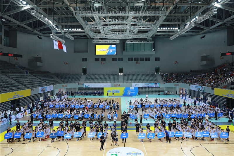 7月30日,NYBO·中國人壽青少年籃球公開賽總決賽,在CBA球隊江蘇肯帝亞男籃主場體育館蘇州高新區文體中心體育館舉行,從全國21個賽區,超萬名孩子中脫穎而出的近千名小球員,在蘇州一決高下,爭奪總決賽最后的冠軍稱號,中國籃協主席、CBA公司董事長姚明出席開幕式,并發表講話。