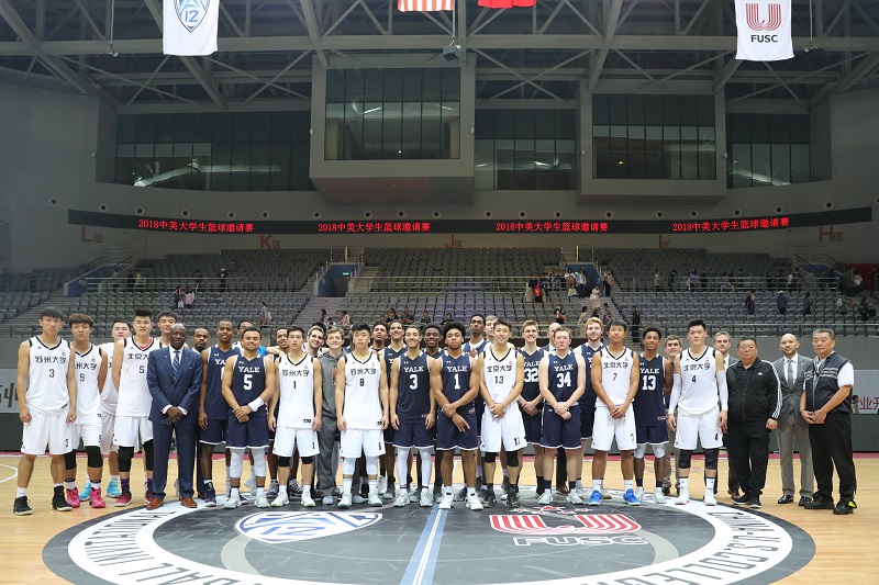 11月6日晚,耶魯大學與北京大學、蘇州大學聯隊之間展開的2018中美大學生籃球邀請賽,率先在蘇州高新區文體中心體育館展開。本次賽事作為PAC-12中美大學生聯盟“兩賽兩峰會”的預熱賽,直接燃爆賽事高潮。蘇州市政府、高新區管委會有關領導及相關部門負責人、大體協、PAC-12聯盟、阿里巴巴、阿里體育及全國高校有關領導、專家、嘉賓等共同到場觀賽。