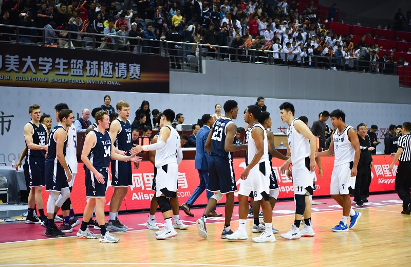 耶魯大學斗牛犬籃球隊是2015、2016年NCAA常青藤聯盟的冠軍,曾在2016年成功進入NCAA錦標賽,但在第二輪比賽中遭遇淘汰。在球隊核心Makai Mason轉投貝勒大學后,上賽季的耶魯男籃最終位列常青藤聯盟第三名。如今隊內仍有Miye Oni、Trey Phills兩名常青藤聯盟明星球員,兩人分別在上賽季入選常青藤聯盟最佳陣容一隊和最佳陣容二隊。 比賽剛開始兩隊就進入了焦灼狀態,比分緊咬,戰況激烈,兩隊比分交替領先。最終,美國耶魯大學隊略勝一籌,以93:84戰勝北京大學、蘇州大學聯隊。