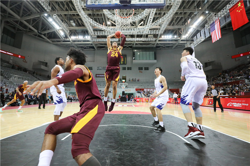 另一場比賽中,以上賽季CUBA冠軍主力陣容出戰的北京大學與蘇州大學聯隊迎戰亞利桑那州立大學太陽惡魔隊。聯隊陣營中張寧、祝銘震、趙柏清等學生球星也悉數應戰,本場比賽可謂NCAA與CUBA強強陣容的扳手腕。