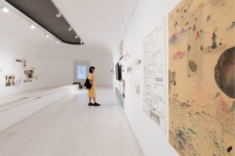 此次展覽包含15件影像、4件動畫、9件攝影、11件繪畫、1件裝置、1件聲音、109件手稿,藝術家通過當代水墨、綜合裝置、影像紀攝、多屏錄像等等多種藝術方式的融通互鑒,為每一件作品賦以多元的表達與闡述。