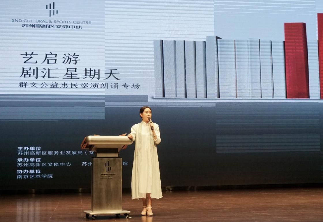 4月22日,由蘇州高新區服務業發展局主辦,蘇州高新區文體中心、蘇州高新區文化館承辦的“藝啟游·劇匯星期天”——群文公益惠民巡演首場活動在高新區文化館小劇場隆重舉行。為響應世界讀書日,推動全民熱愛閱讀,提高國人閱讀素養,此次活動以“名家經典朗誦”為主題,通過自身改編表演,朗誦中國文學作品里的名篇橋段,讓觀眾感受朗讀藝術的魅力。