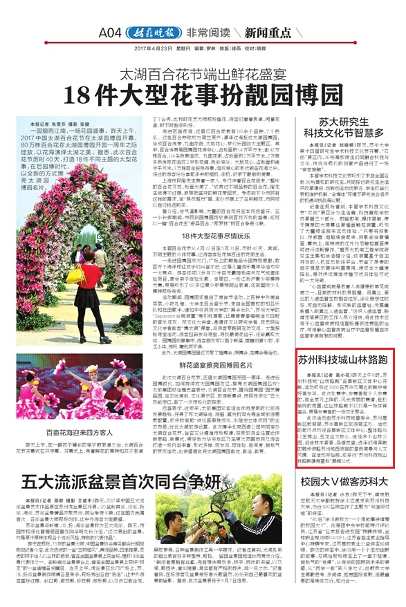 此次活動由蘇州科技城管委會、蘇州高新區教育局、蘇州高新區旅游局主辦。活動的起終點均設在高新區文體中心,整體路線以玉屏山、五龍山為核心,途經多個山林公園,沿途林木森森,鳥語花香,選手們用奔跑的腳步領略蘇州城西獨有的春色美景與人文風情。在活動開始前,還舉行“蘇州科技城山林路跑健身基地”揭牌儀式。