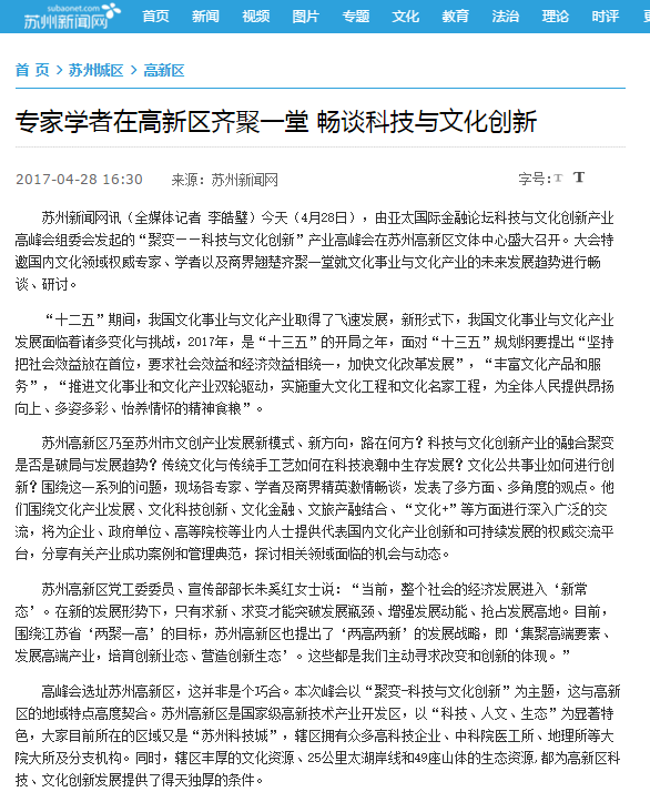 專家學者在高新區齊聚一堂 暢談科技與文化創新