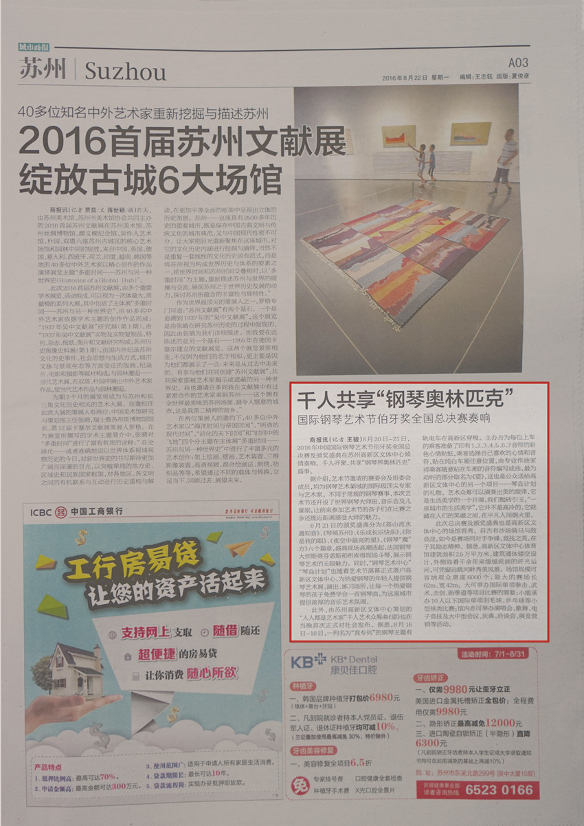8月20日-21日,2016年中國國際鋼琴藝術節伯牙獎全國總決賽及頒獎盛典在蘇州高新區文體中心傾情奏響。千人齊聚,共享“鋼琴界奧林匹克”盛事。
