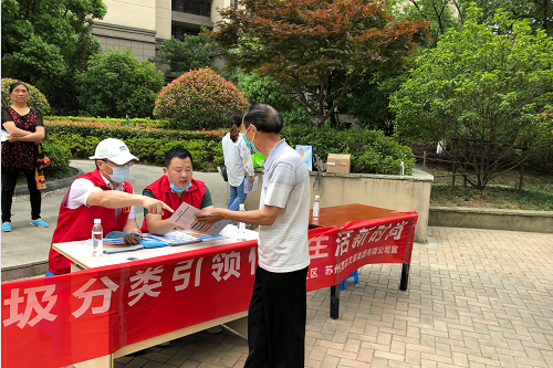 2020年5月22日,蘇高新文旅第四黨支部走進南津社區開展“垃圾分類 黨員先行”主題黨日活動。